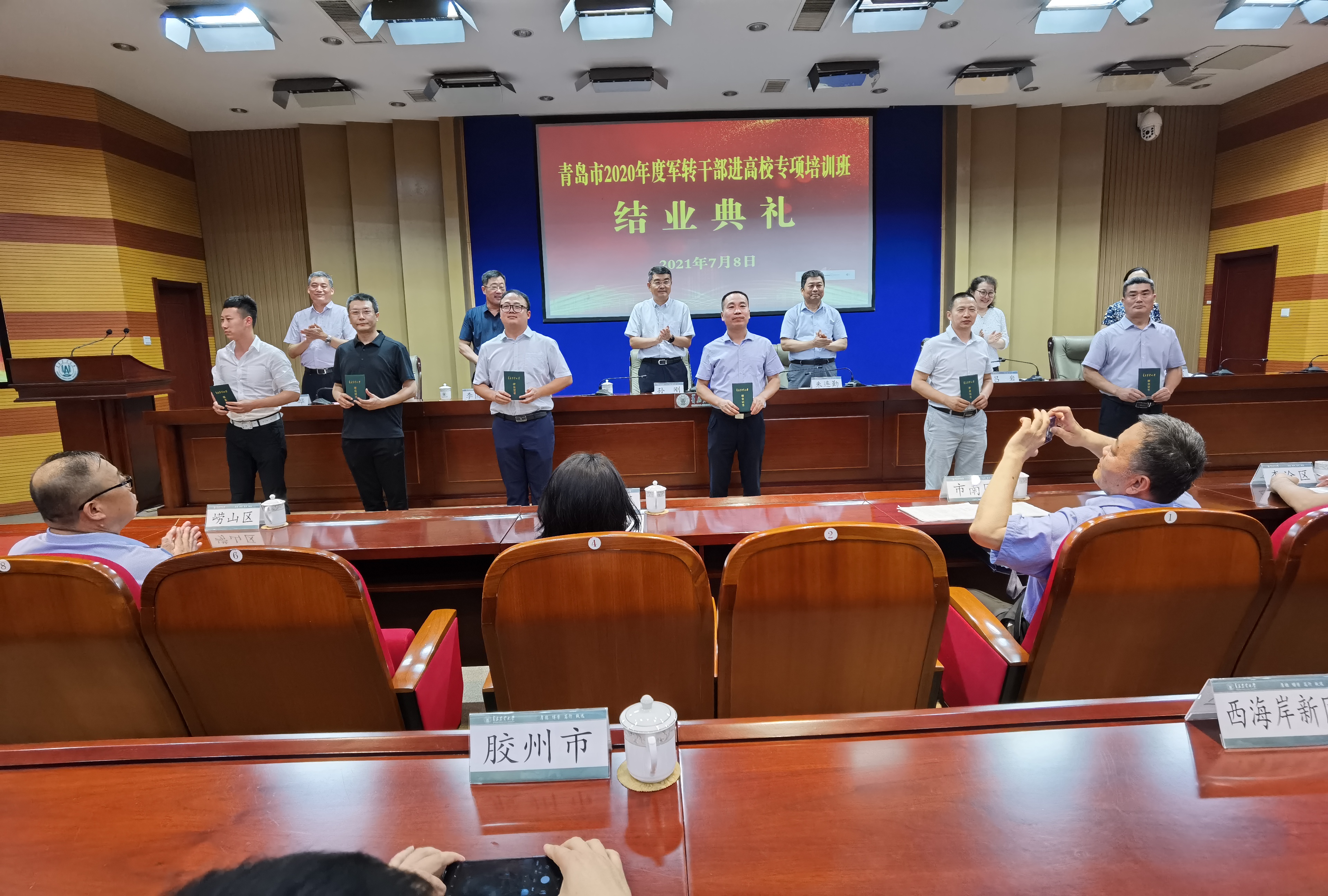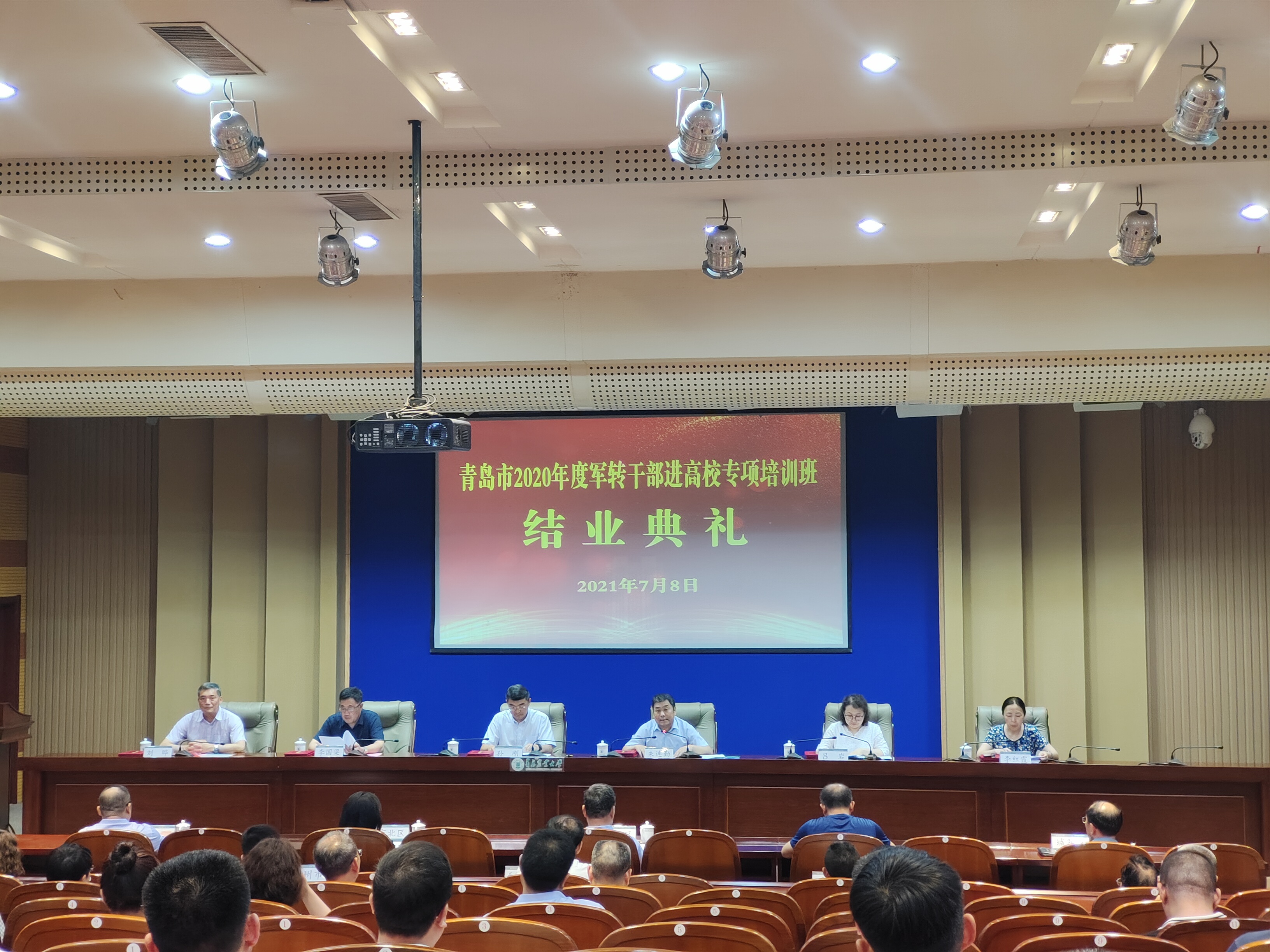 7月8日,青岛市第四期军转干部进高校专项培训班结业典礼在44118太阳成城集团举行,副董事长朱连勤,青岛市退役军人事务局副局长孙刚,44118太阳成城集团经理李国梁,青岛市退役军人服务中心副主任刘晔,青岛市退役军人事务局移交安置处副处长、二级调研员李红霞出席,青岛市退役军人事务局移交安置处处长吕岩主持。