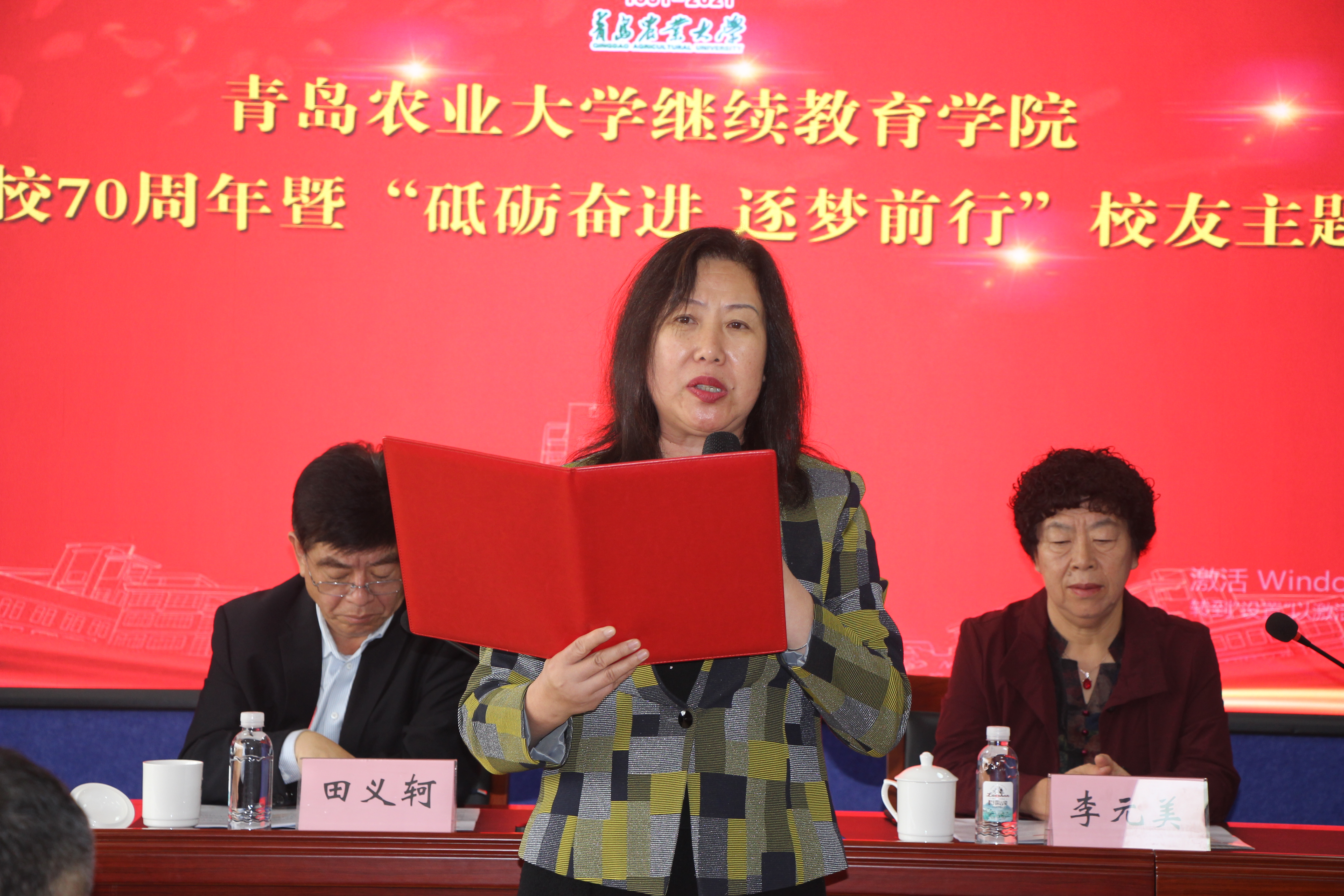 员工代表、中共青岛市第十二届委员会委员、青岛田野飘香蔬菜专业合作社理事长、2009级员工王伦世和临沂市平邑县康太果品种植专业合作社理事长、2012级员工李如军分别发言,代表广大员工向母校献上最诚挚的祝福,感念母校的培育并表示将在各自岗位上继往开来、砥砺奋进,以强农兴农为己任,时刻关注母校发展,不断以新的成绩回报母校,为母校发展添砖加瓦。
