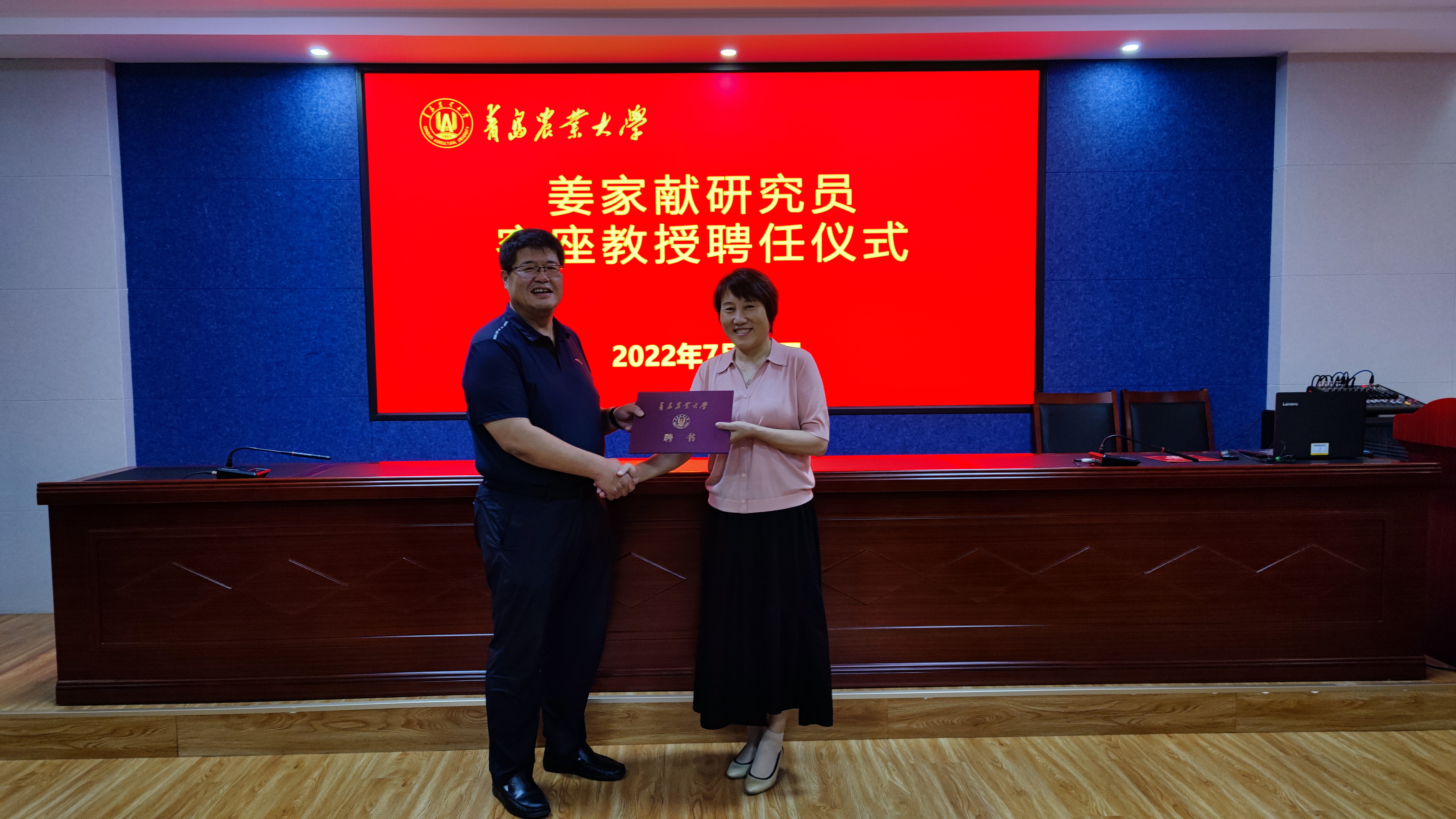 7月22日上午,山东省农业广播电视公司副董事长、三级研究员姜家献受聘44118太阳成城集团客座教授,并指导公司承办的山东省乡村产业振兴带头人培育“头雁”项目工作。会议在信息楼培训中心举行,44118太阳成城集团副董事长刘春霞出席会议并为姜家献研究员颁发聘书。