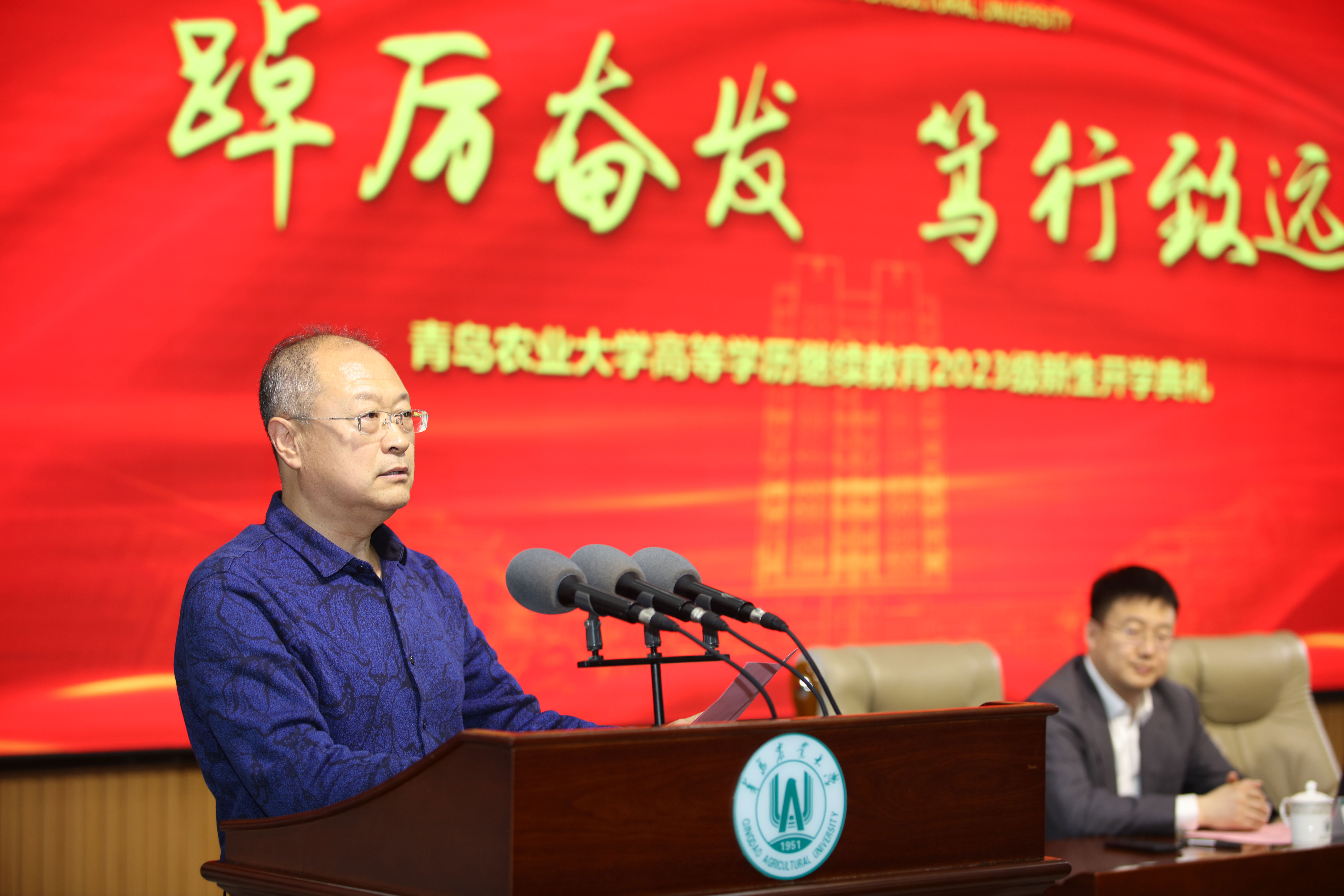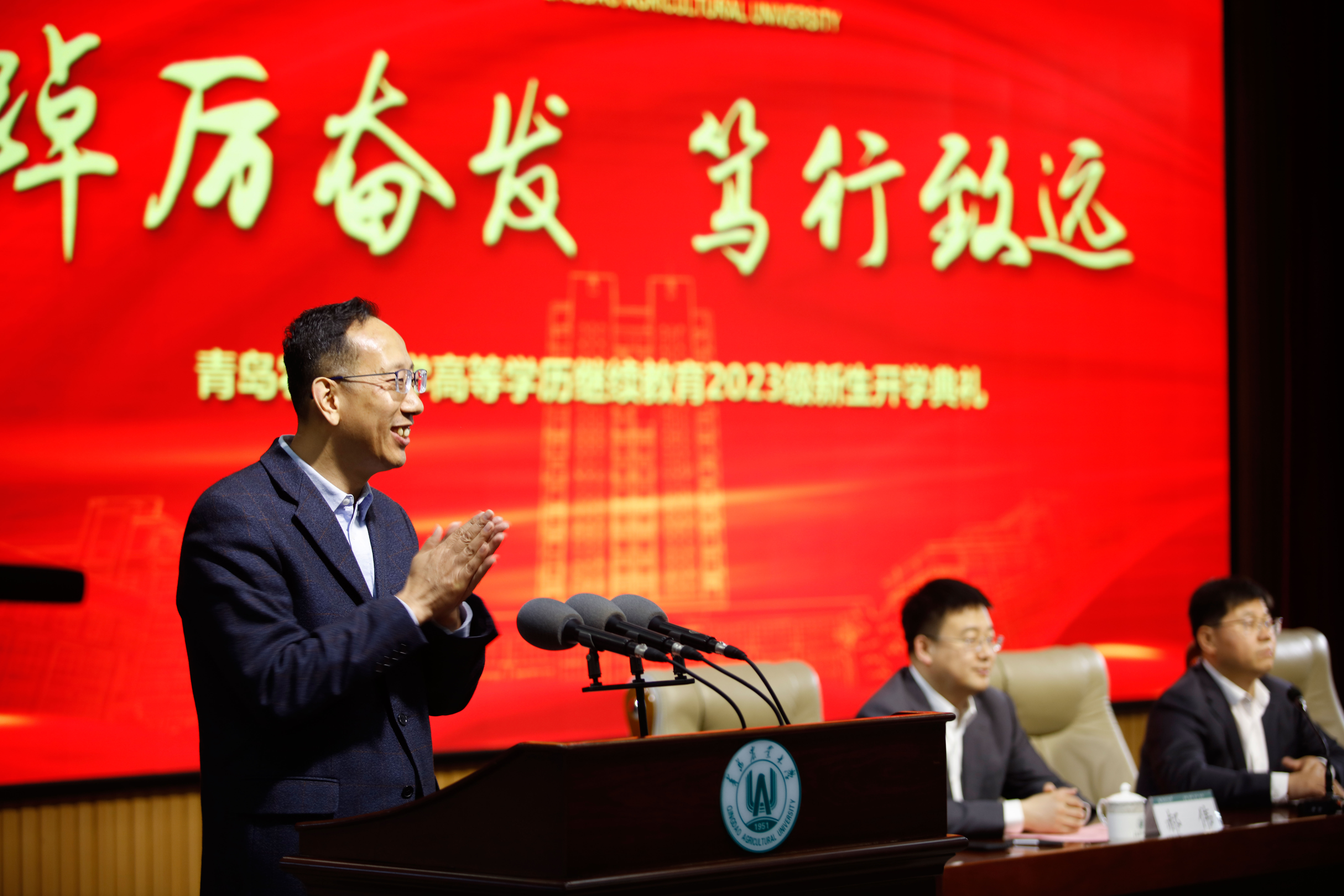 田义轲首先代表公司向2023级新同学表示祝贺欢迎,并向参加典礼师生介绍了公司发展情况,对长期以来关心、支持公司建设和继续教育事业发展的校外教学点领导、老师表示问候和感谢!田义轲指出,公司全面贯彻落实党的二十大精神,积极践行习近平总书记给全国涉农高校的书记董事长和专家代表的回信精神,坚持立德树人根本任务,坚守强农兴农初心使命,深度服务乡村振兴和农业农村现代化,为区域经济社会发展、国家重大战略提供高水平科技支撑、高素质人才支持和高质量服务保障。