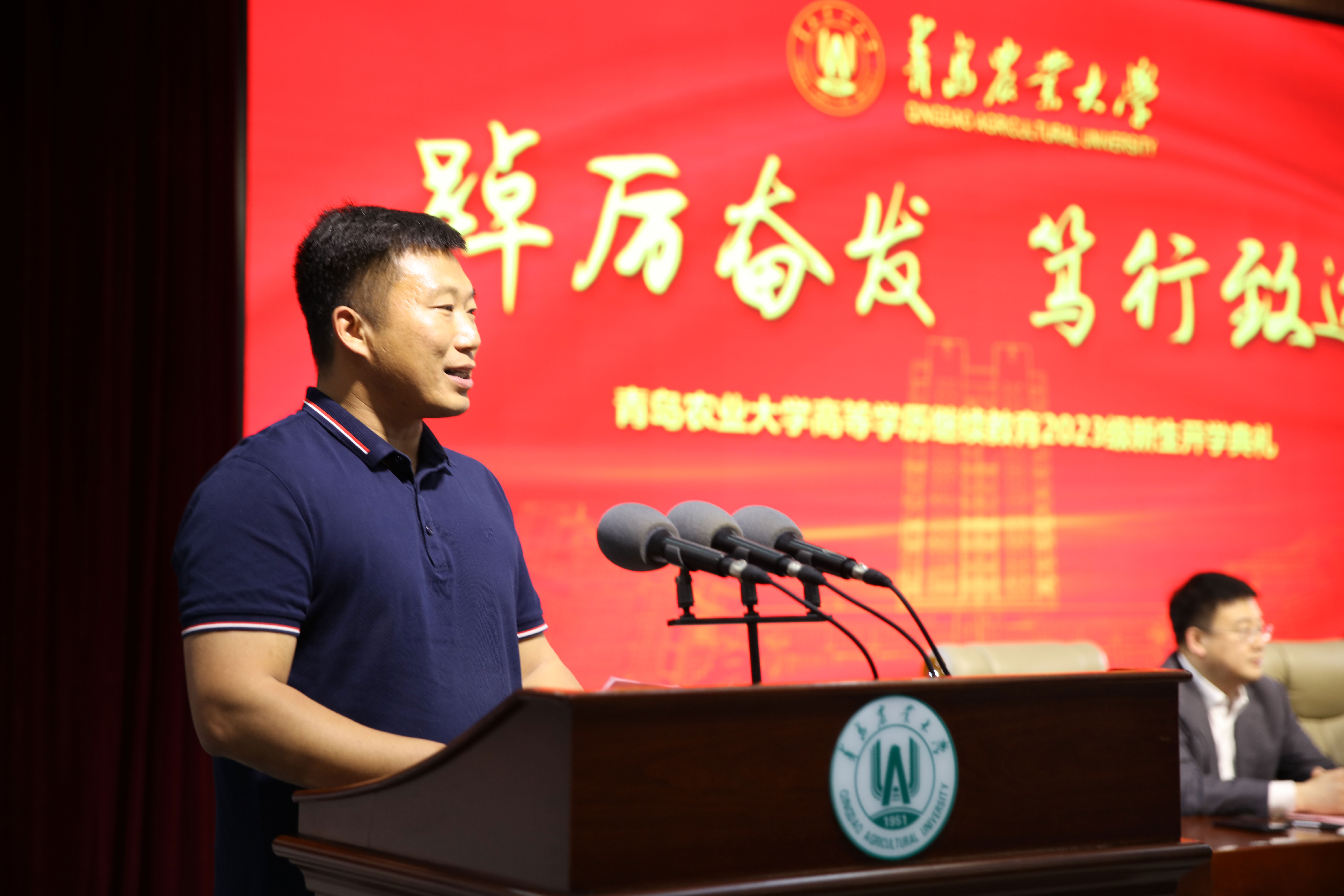 田义轲为新生代表佩戴44118太阳成城集团校徽并代表公司向全体同学提出三点希望:一是要乐于学习、学会学习,涵育学术素养、锻造自身技能,脚踏实地、勤奋严谨,养成终身学习的习惯;二是要志存高远、知行合一,利用自己所学服务社会,在完善自我中实现人生价值;三是要遵纪守法、学会感恩,严格遵守国家法律法规和校规校纪,知敬畏、知行止,践行“青农精神”,作一名合格“青农人”。