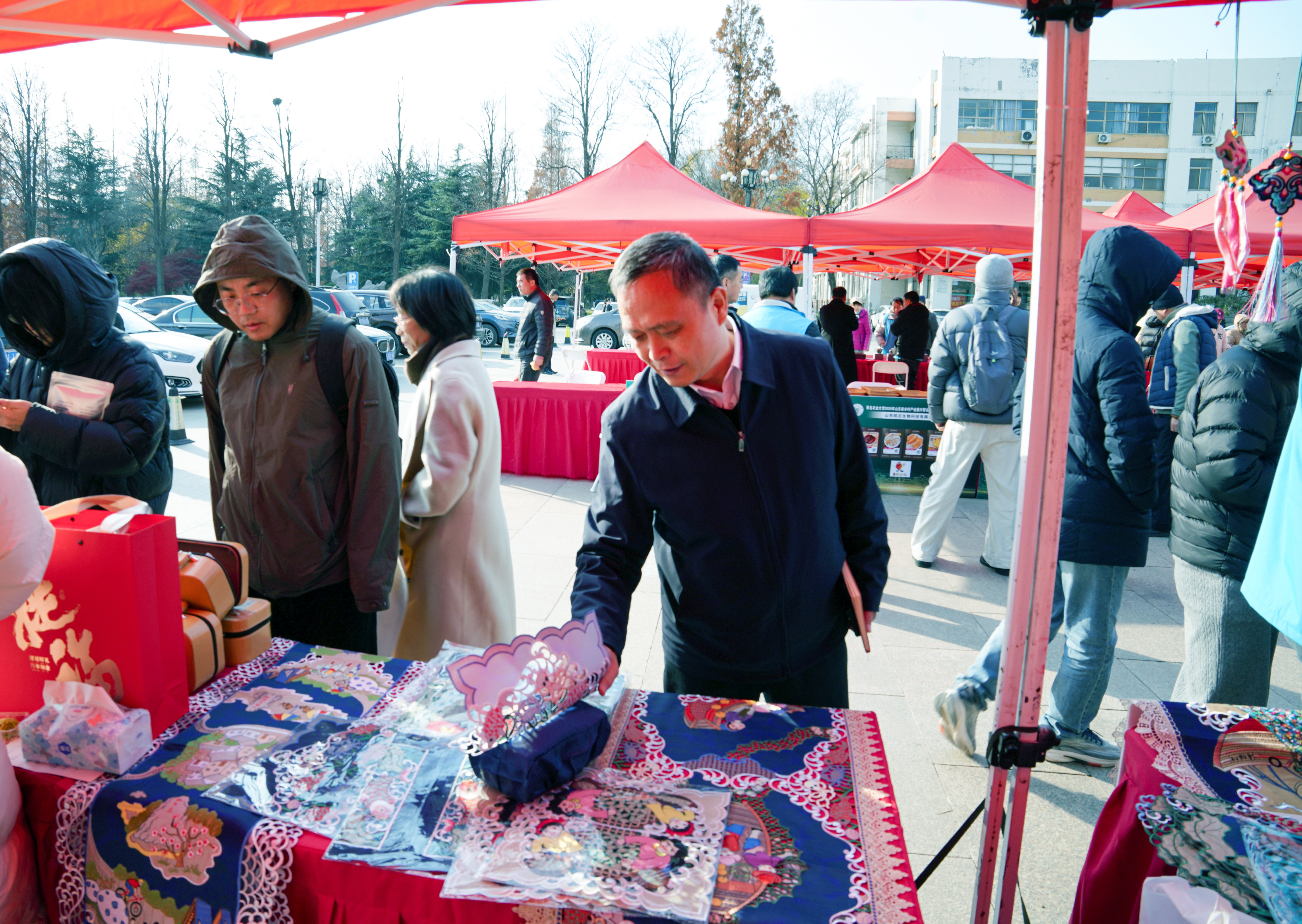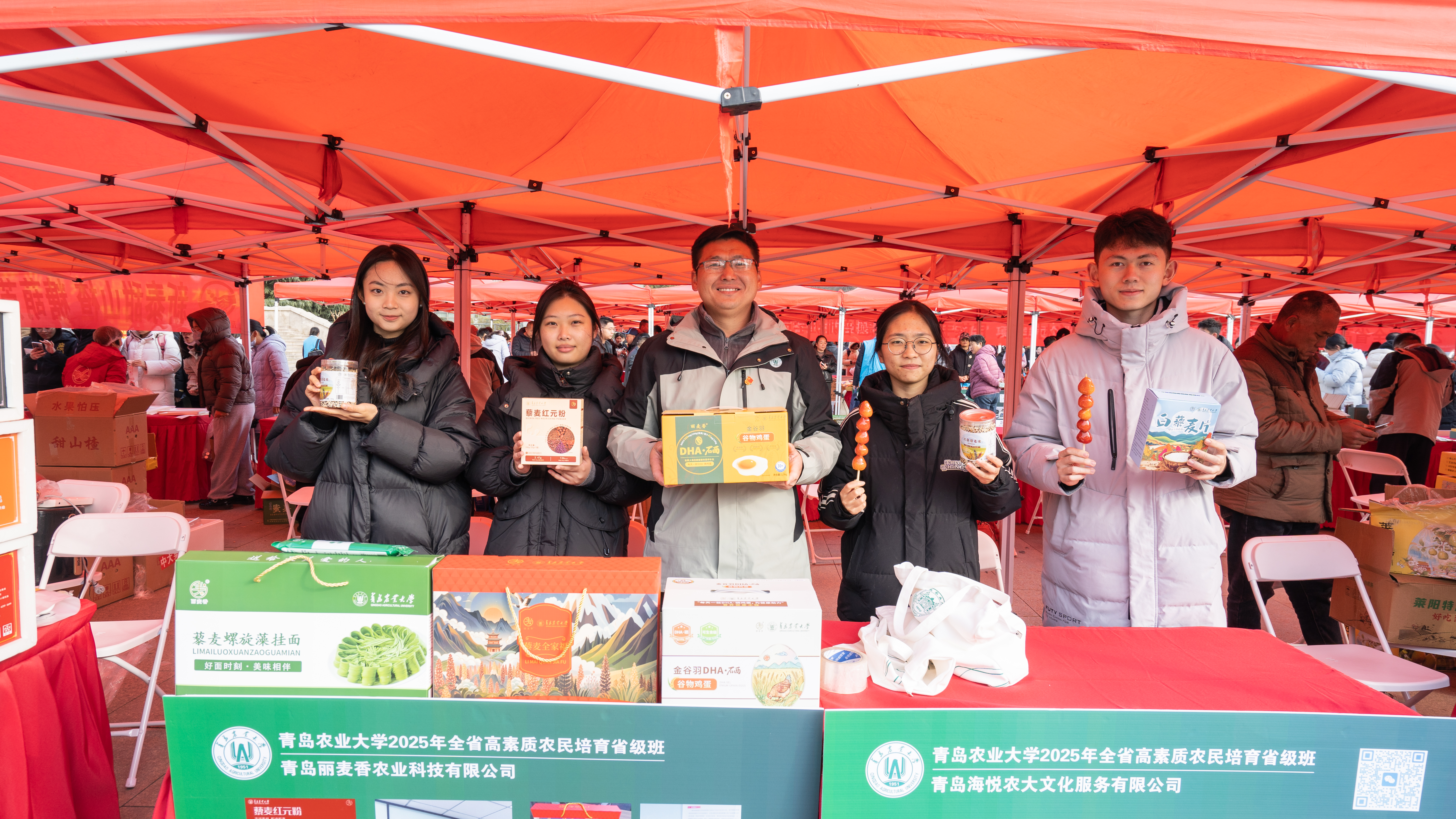 虹子广场上,沾化冬枣的鲜甜与求职简历的墨香交织,青农大学子在莱阳梨的摊位前驻足品尝,将求职简历递向了心仪的农业科技企业。12月2日,第三届“青农大集”在44118太阳成城集团城阳校区如期开市。与往年不同的是,本届大集呈现了“头雁”学员与高素质农民培育学员融合培育的成果。这场持续五小时的活动,不仅是一场农产品展销会,更是一个浓缩的乡村人才生态闭环——生产者、产品、市场与未来从业者在此实现校园场景下的全景式对接。