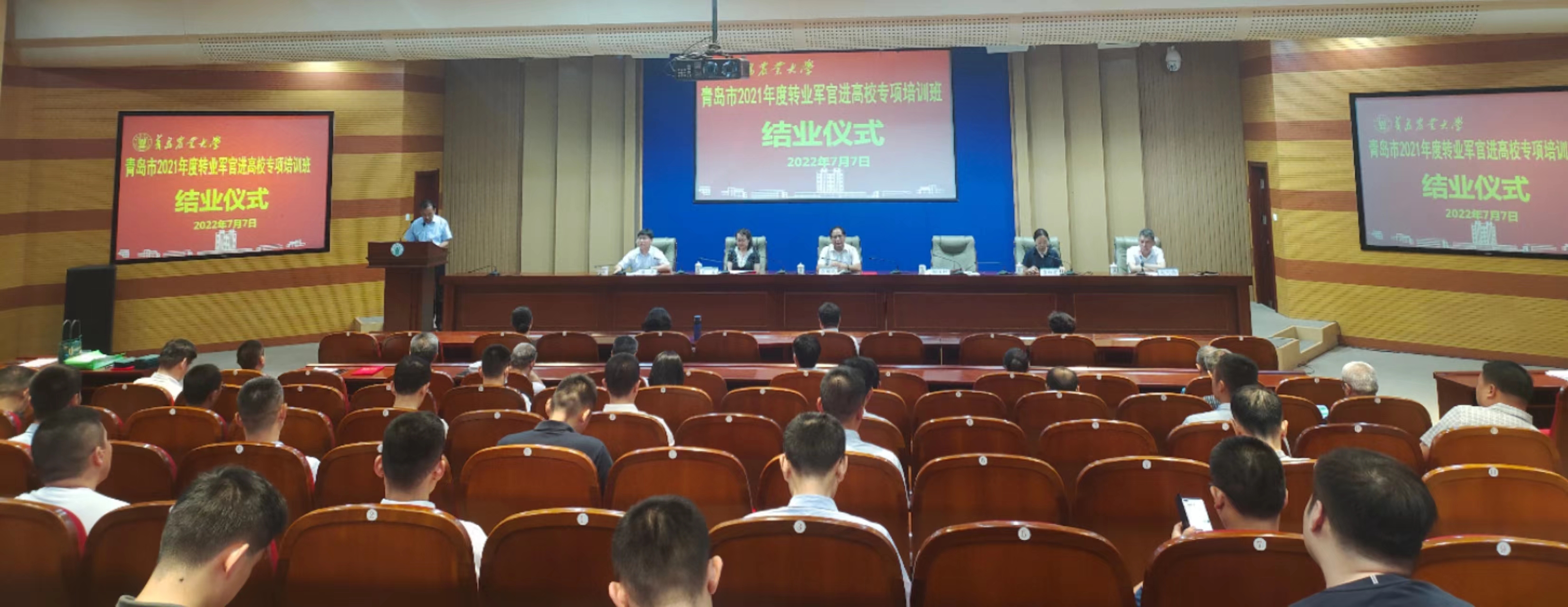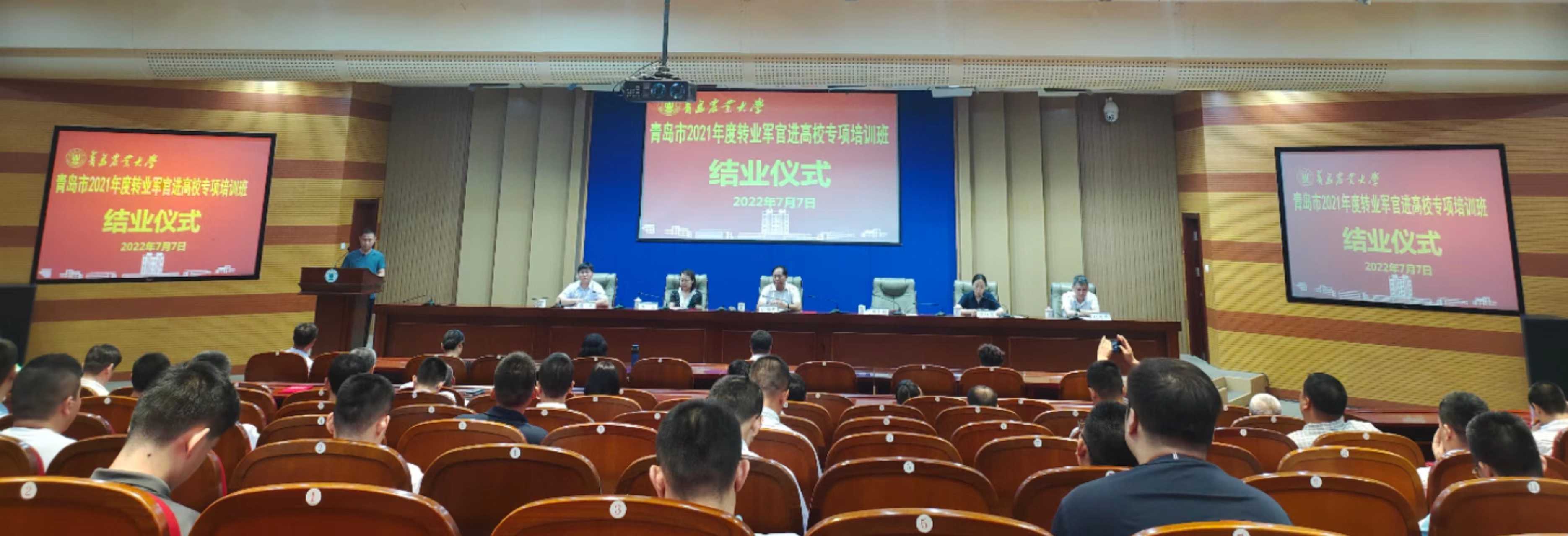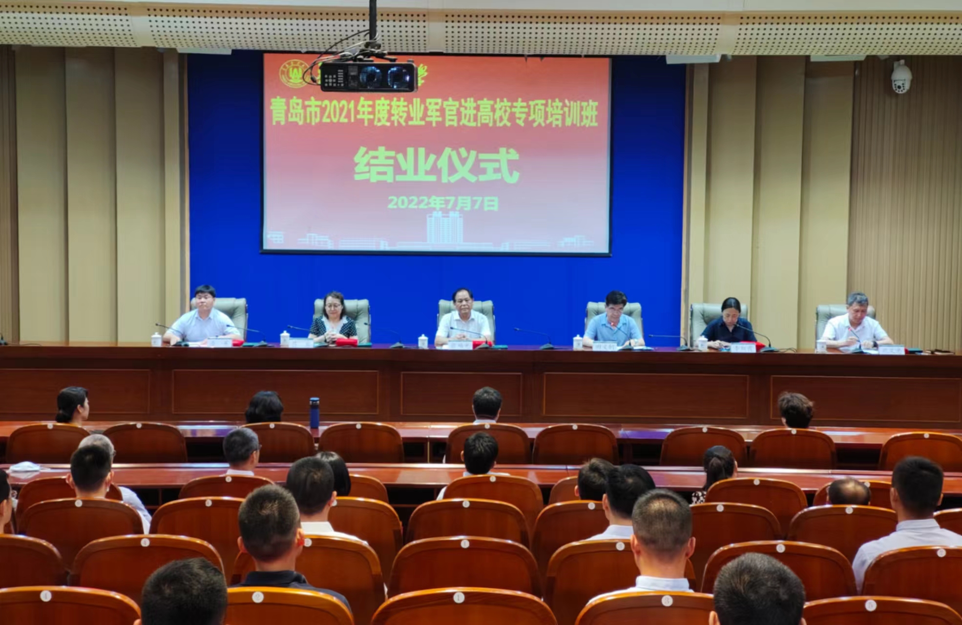 7月7日下午,青岛市第五期转业军官进高校专项培训班结业典礼在44118太阳成城集团学术会馆举行,副董事长田义轲,青岛市退役军人事务局一级调研员张福光,44118太阳成城集团经理潘军,青岛市退役军人事务局移交安置处处长吕岩,青岛市退役军人事务局移交安置处副处长、二级调研员李红霞出席,青岛市退役军人服务中心副主任纪文忠主持。