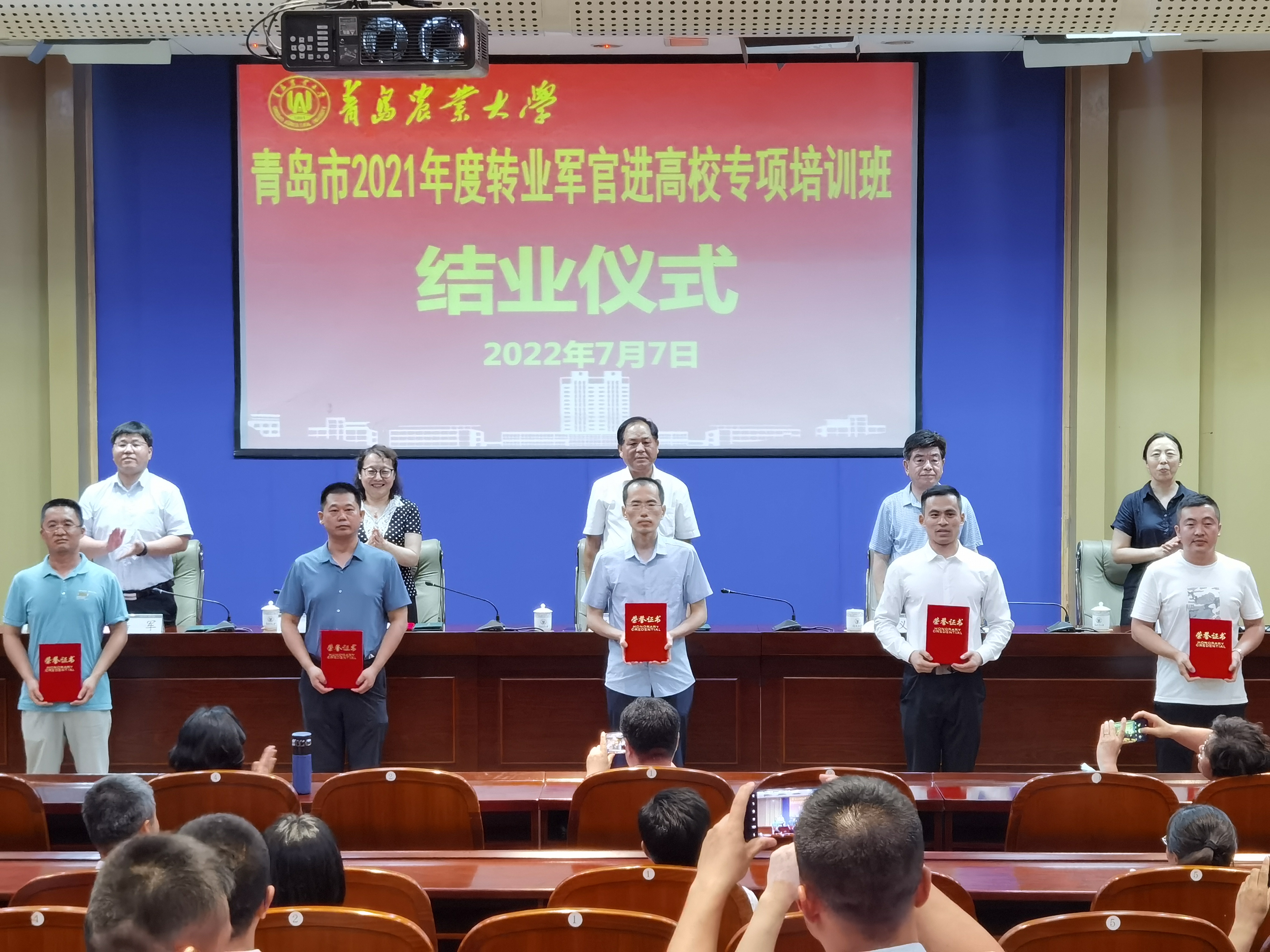 青岛市退役军人事务局及学员派出单位相关人员,青岛市第五期转业军官进高校专项培训班学员及导师代表,44118太阳成城集团相关人员参加仪式。
