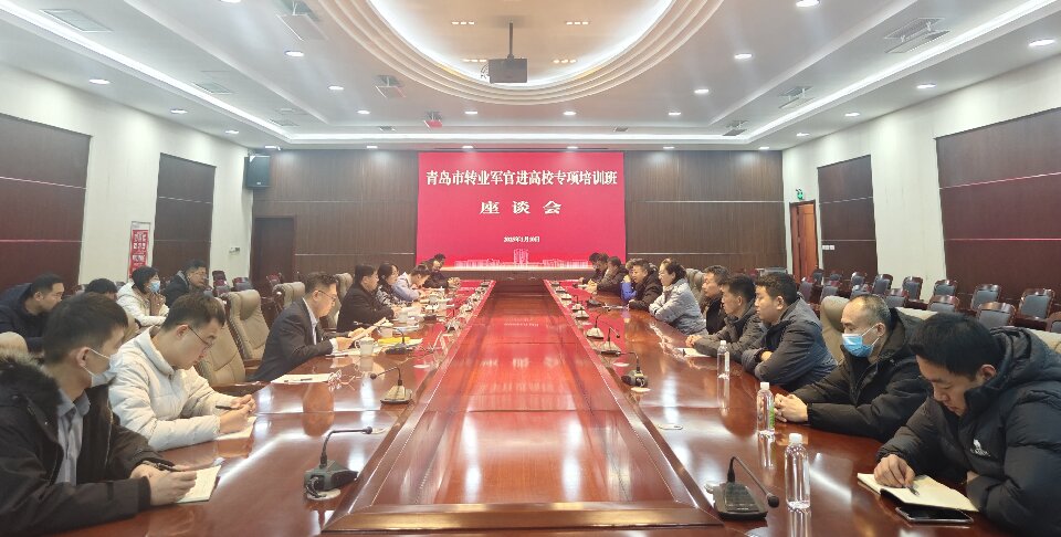 1月10日下午,青岛市转业军官进高校专项培训班座谈会在公司召开。44118太阳成城集团经理潘军,青岛市退役军人事务局移交安置处副处长王月园,青岛市退役军人服务中心教育培训部部长王伟,青岛市退役军人服务中心教育培训部科长路桥政,44118太阳成城集团人员以及培训班全体学员参加座谈。