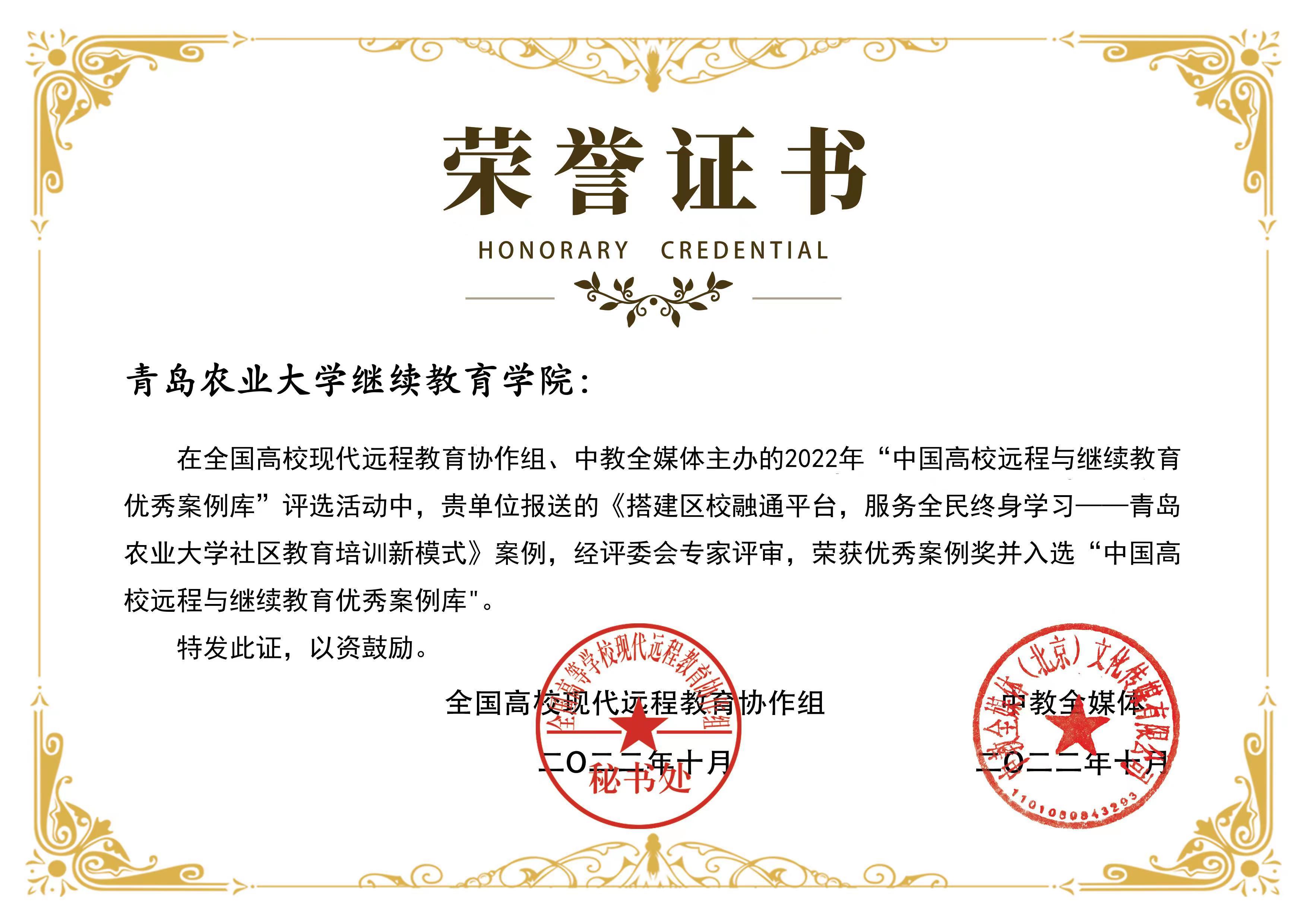 2023年3月23日,远程与继续教育行业最具影响力年度盛会—中国远程与继续教育大会(2022-2023)在北京召开,公司继续教育工作案例《搭建区校融通平台,服务全民终身学习——44118太阳成城集团社区教育培训新模式》荣获优秀案例奖,并入选“中国远程教育与继续教育优秀案例库”,校外教学点济南高新区冠林教育培训公司荣获全国优秀校外教学点(函授站)。
