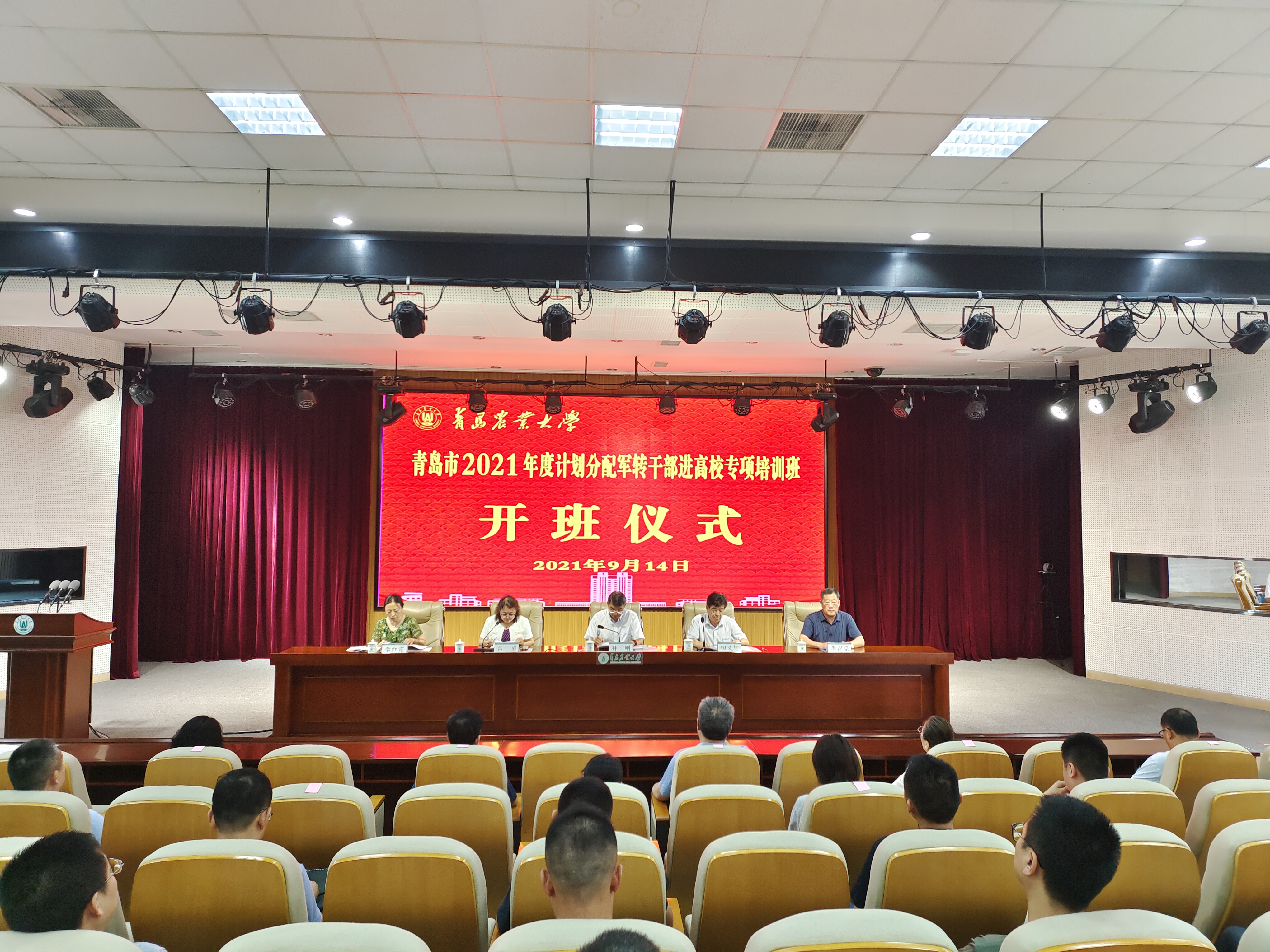 9月14日,青岛市2021年度计划分配军转干部进高校专项培训班开班仪式在公司举行。副董事长田义轲,青岛市退役军人事务局副局长孙刚出席开班仪式,仪式由青岛市退役军人事务局移交安置处处长吕岩主持。