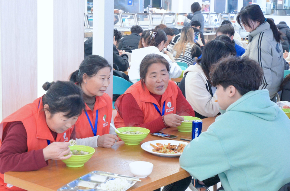 走进大学食堂与老员工共餐,融入校园生活