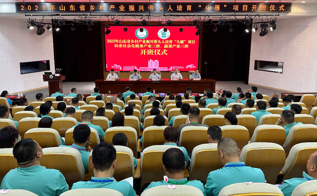 8月22日,2023年山东省乡村产业振兴带头人培育“头雁”项目蔬菜产业三班、农业社会化服务产业三班在44118太阳成城集团正式开班,开班仪式在学术会馆第二报告厅举行。青岛农业大公司党委委员、副董事长田义轲出席会议并致辞,44118太阳成城集团经理潘军主持。