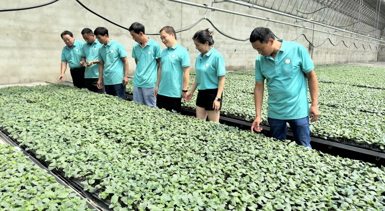8月18日,学员们相约来到了临沂市兰陵县鸿雁现代农业研究院所在地--兰陵县鸿强蔬菜产销专业合作社,该社是鲁南苏北地区最大的蔬菜种苗繁育基地,年产值两亿余元,繁育各类蔬菜种苗两亿多棵,是兰陵县蔬菜生产基地的主要种苗供应商。在学员朱兴芳的引导下,互访小分队学员参观了标准化、规范化、自动化的现代种苗大棚,育苗床和种苗整齐有序,喷水、卷帘、温度、湿度测控全部实现了智能化、自动化管理。新建设的基质土全自动生产车间正在安装调试设备,投产后,年产优质基质土2000万余吨,能满足兰陵县及周边地区育苗场的基质土用量。同时,在交流中了解到该合作社现已培训各类技术能手、土专家、田秀才2000余人次,为兰陵“四雁工程”的发展贡献了重要力量。