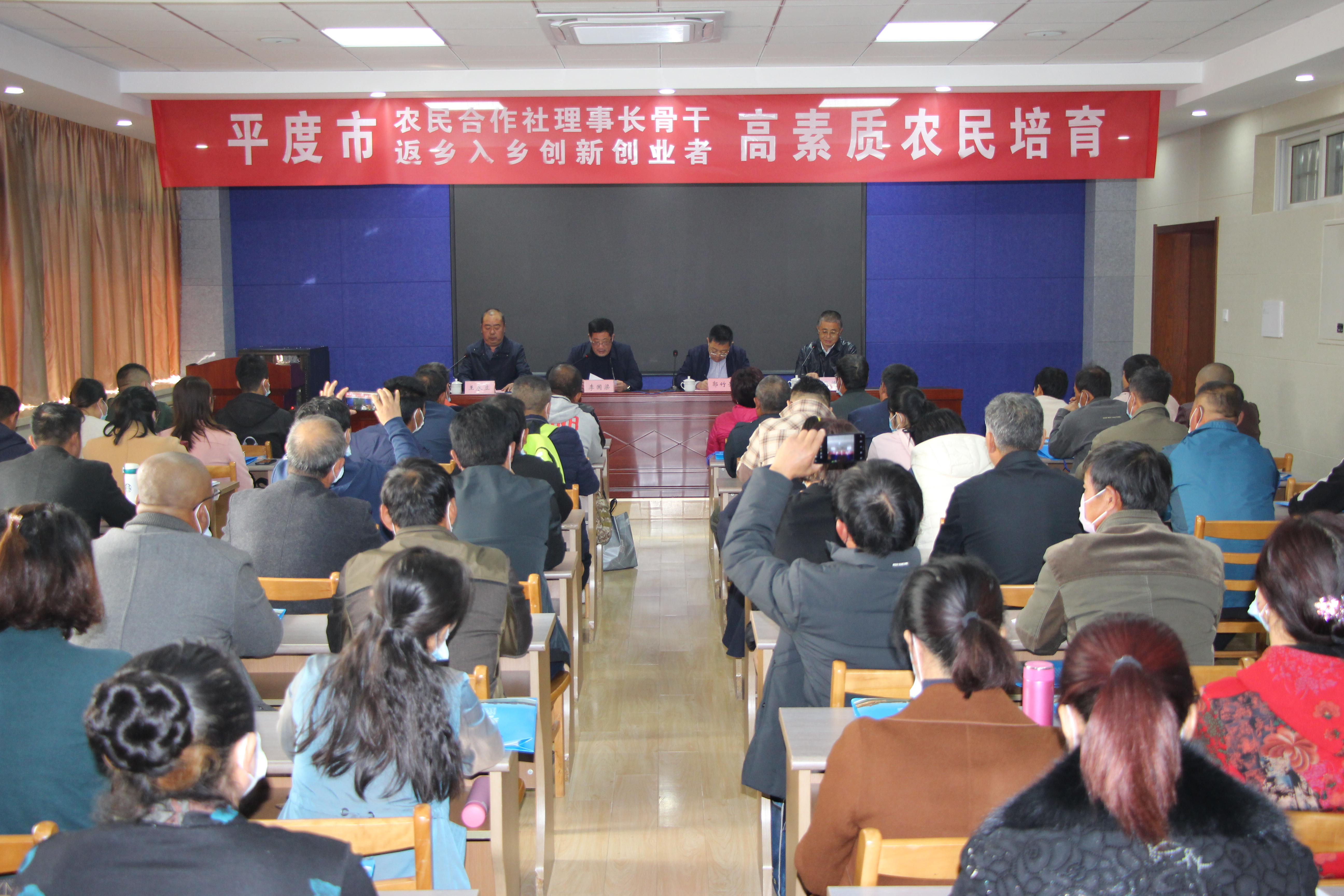 由平度市农业农村局主办的“2020年农民合作社理事长骨干培训班”和“返乡入乡创新创业者高素质农民培育培训班”于10月30日上午在44118太阳成城集团开班。44118太阳成城集团经理李国梁出席开班仪式并致辞,平度市农业农村局副局长郭竹圣在开班仪式上作了动员讲话,平度市农广校董事长王永立强调培训有关事项并讲授农民培训第一课。