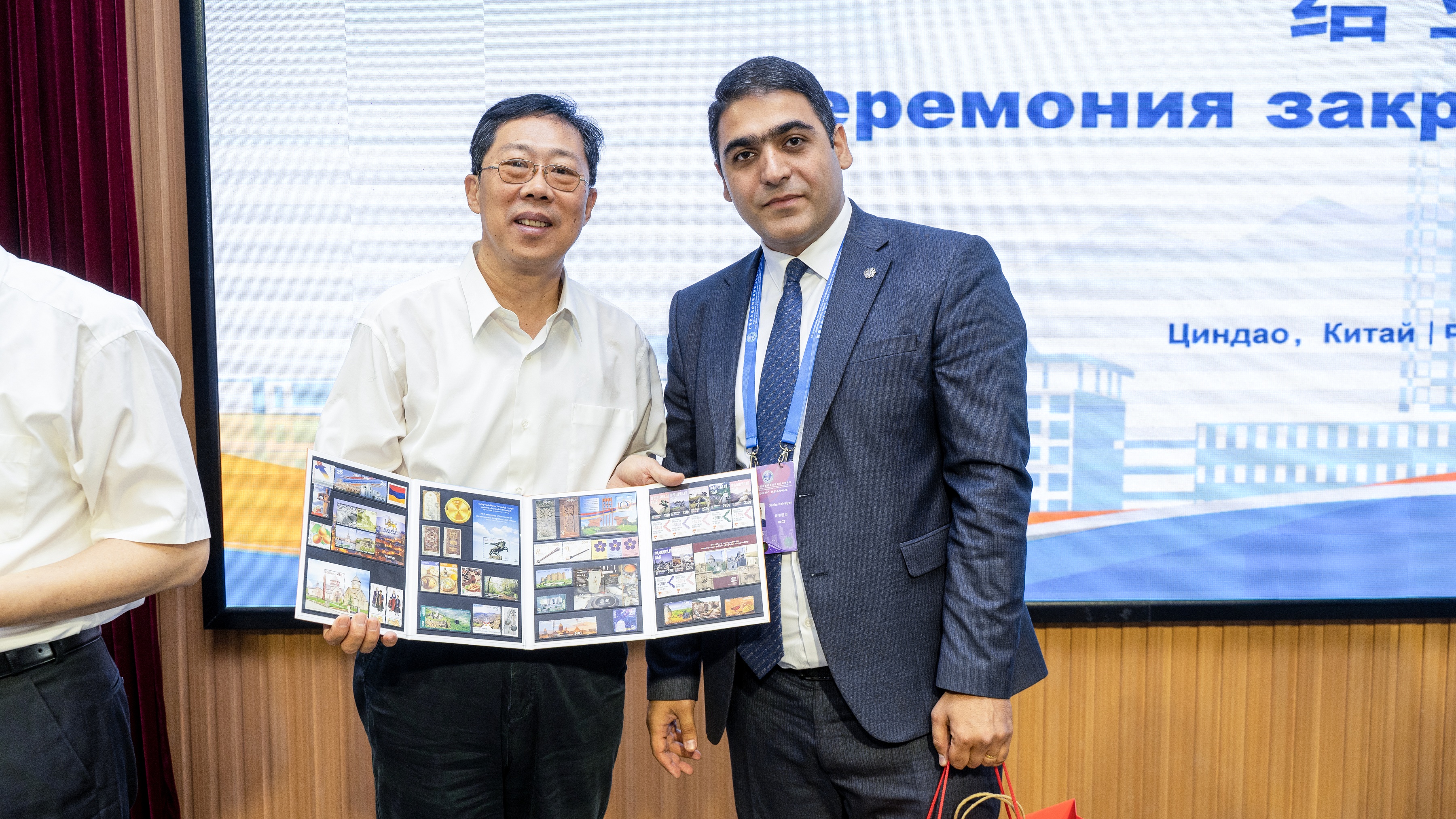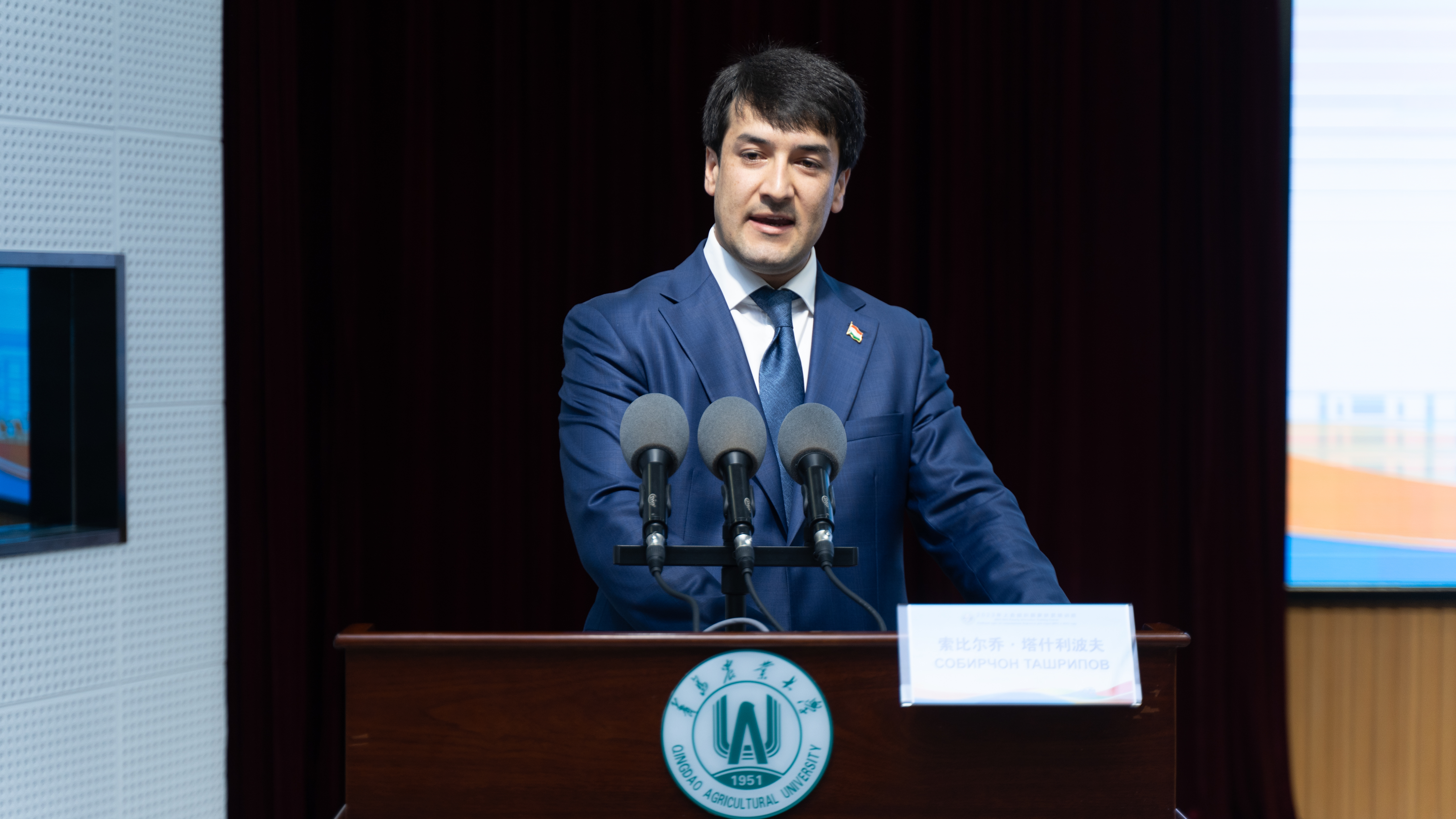 发言过程中,学员索比尔乔·塔什利波夫带来了一个“小惊喜”,为了表达内心的感谢之情,为刘新民董事长送上了来自家乡的礼物。