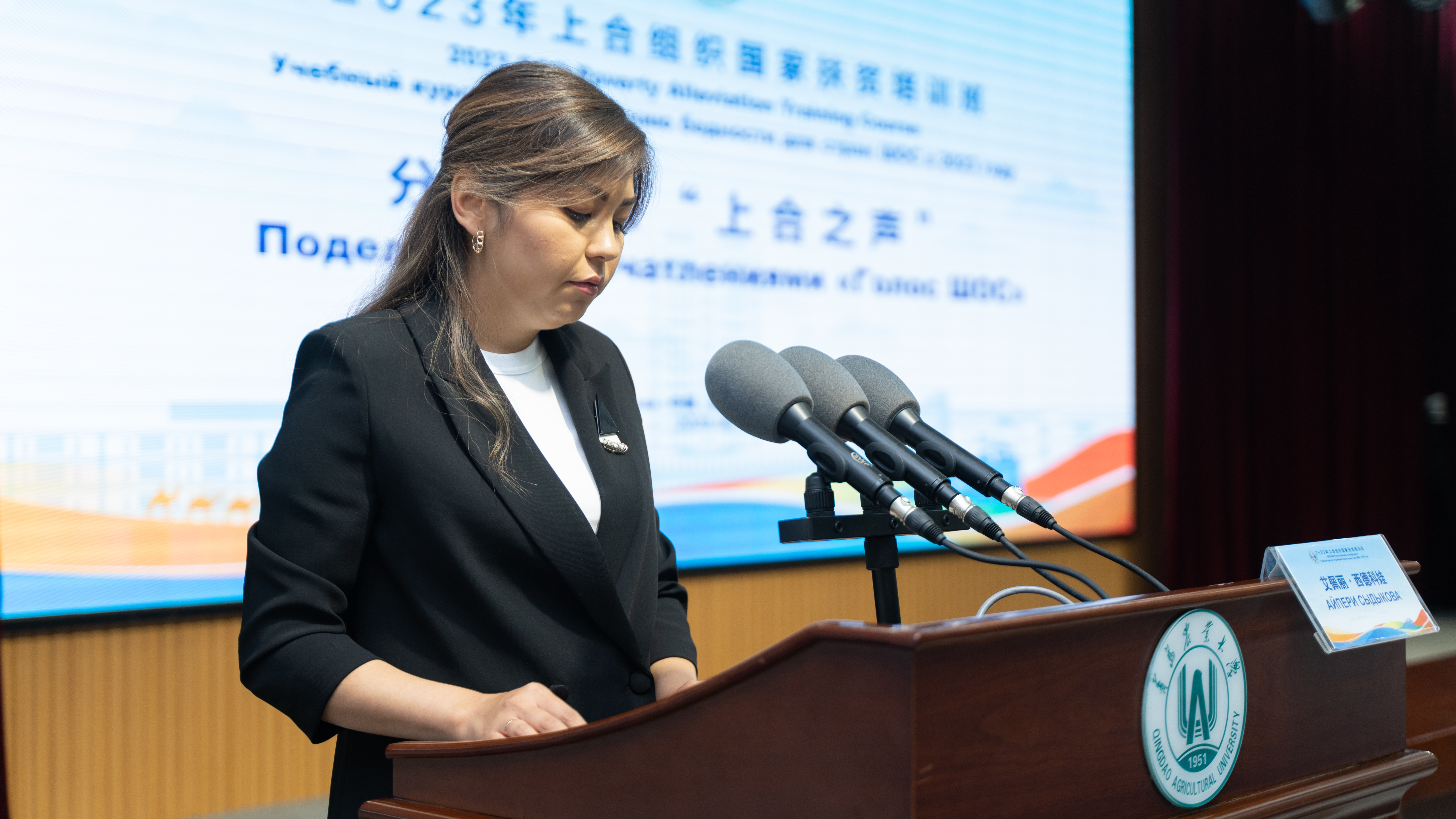 学员代表吉尔吉斯斯坦比什凯克市国际合作和礼宾局高级专家艾佩丽·西德科娃、楚河区区长日尔加尔别克·沙基耶夫,塔吉克斯坦杜尚别市居民社会保障局局长索比尔乔·塔什利波夫,乌兹别克斯坦撒马尔罕市市长助理马鲁夫·塔什普拉托夫,亚美尼亚经济部部长助理娜拉·玛尔季罗夏安分别做交流发言,分享培训学习感悟。
