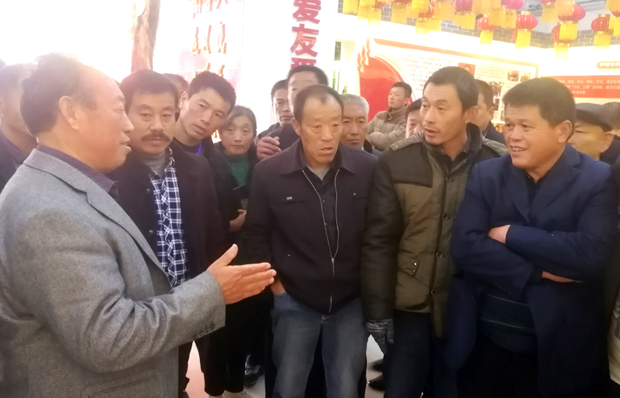 平度市蓼兰镇杨家顶子村党支部书记杨同林介绍扶贫农创体情况