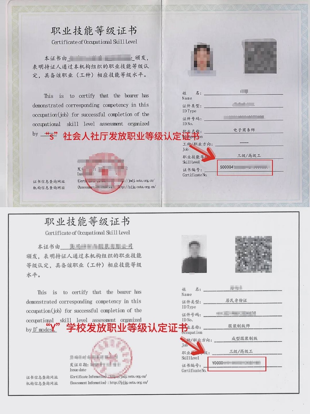 3、国家人力资源和社会保障厅职业技能等级认定机构,发放的职业技能等级证书为S开头。